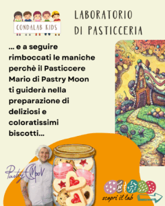 Laboratorio di Pasticceria: Biscotti Golosi con il Pasticcere Mario E a seguire, rimboccati le maniche perché il Pasticcere Mario di Pastry Moon ti guiderà nella preparazione di deliziosi e coloratissimi biscotti! Non temete, qui non ci sono streghe cattive, ma solo ingredienti genuini e tanta allegria per creare dolcetti da favola.